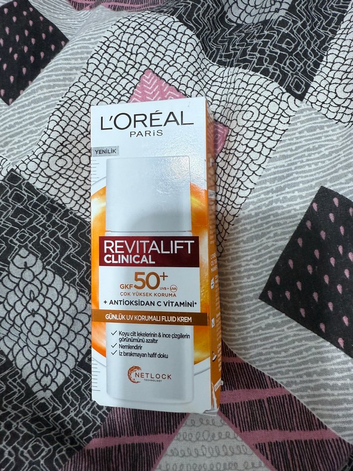 L'Oréal Revitalift Clinical GKF 50+ yüz kremi, yüksek güneş koruması ve antioksidan C vitamini içerir. İnce çizgileri azaltır, nemlendirir ve hafif dokuya sahiptir. ☀️ Kutulu gratisten aldım açılmadı. Çok fazla ürünüm olduğu için satıyorum