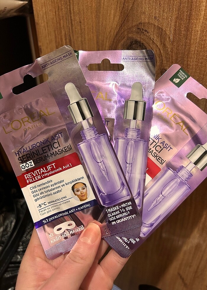 Loreal Paris revitalift filler serinletici göz serum maskesi 3 adet. #lorealparis #gözserumu #maske #gözmaskesi #tonik #avon