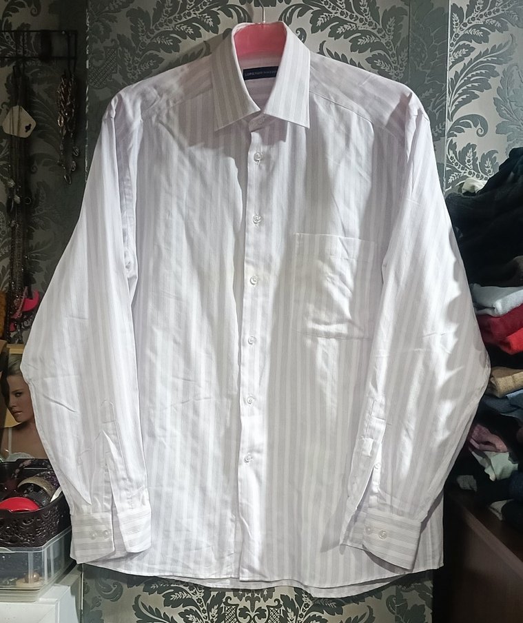 Pamuklu kumaştan yapılmış, uzun kollu, yakalı ve düğmeli erkek gömleği. Normal boyda, ofis ve günlük sokak tarzı için uygun, görseldeki gibidir mevsimliktir klasik modeldir geniş kesimdir koktukaltı 60 cm