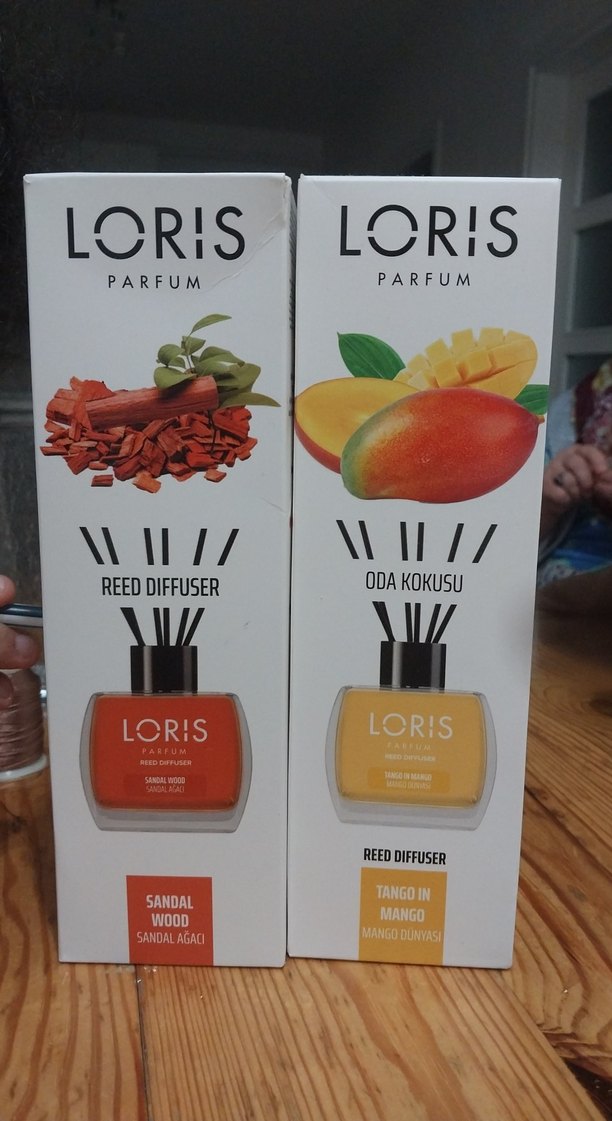 Loris Parfüm reed diffuser seti, sandal ağacı ve mango kokularıyla. Doğal aromalı iki farklı oda kokusu içerir.