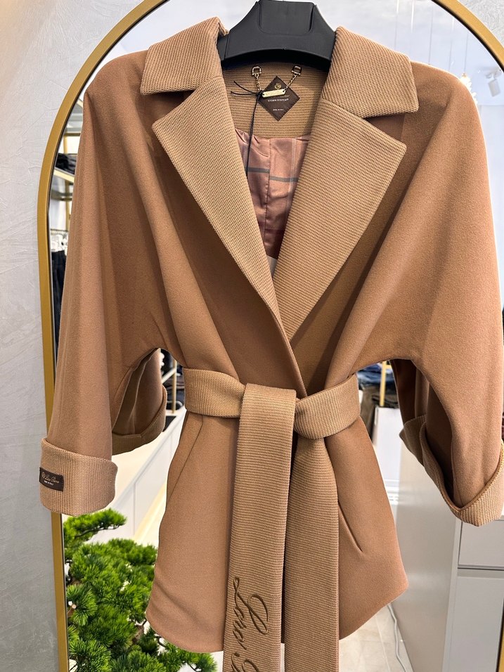 Camel renkli kaşmir kaban, kesik yakalı ve uzun kollu. Kemerli bel ve kol detayı. Premium kalite orijinal ithal ürün. S-M-L-XL bedenlidir. Sınırlı stok.