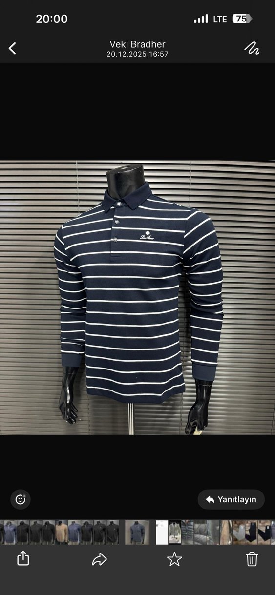 Loro piano Çizgili Uzun Kollu Gri Polo Tişört