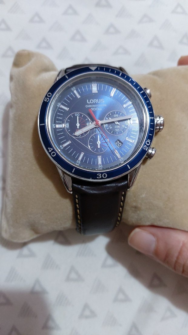 Lorus marka, mavi kadranlı, kronograf özellikli ve tarih göstergeli erkek kol saati. Koyu renk deri kayış ve iş ortamına uygun modern tasarım sunar. ⌚lorus marka erkek kol saatidir. sorunu yoktur. kayisi hafif deforme oldu. birde pil degisimi gerekli . iadesi yoktur. son fiyattir.