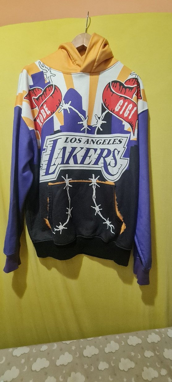 Uzun boy, bol kesim ve uzun kollu bu mor sweatshirt, Los Angeles Lakers baskısına ve fermuarlı detaya sahiptir. Sentetik kumaştan üretilmiştir, sokak stili ve spor için uygundur.