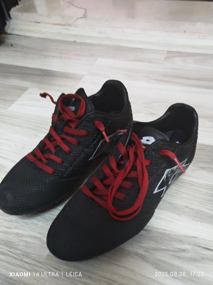 Koyu siyah renkte, kırmızı bağcıklı erkek futbol ayakkabısı. Kauçuk malzemeden üretilmiş, spor ve sokak stili için uygundur. Desensiz, trend bir görünüme sahiptir. ⚽