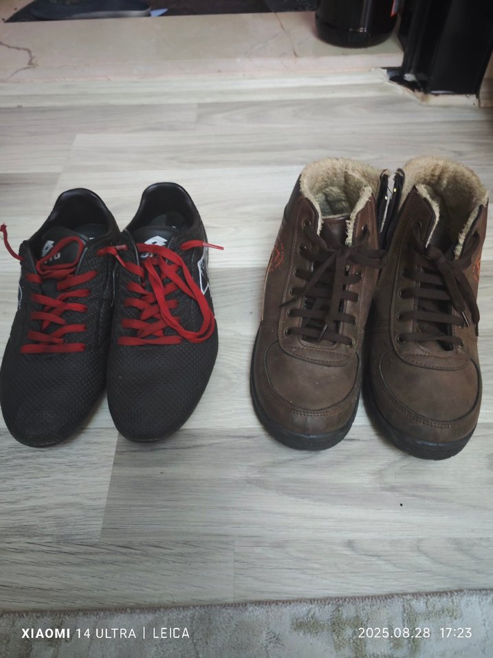 Sıcak astarlı, bağcıklı koyu kahverengi erkek botları. Rahat ve desen içermeyen, athleisure tarzına uygun. bot 39, krampon 38 numara