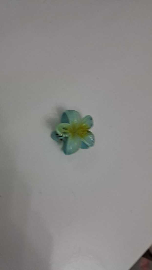 Pastel turkuaz renkte, boncuk detaylı plastik çiçek şeklinde saç tokası. Minimalist ve bohem tarzda.
