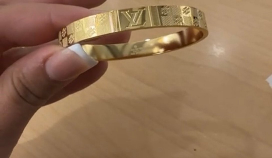 İthal kelepçe Parlak altın renkte, tokalı Louis Vuitton logosu bulunan bilezik, düğün ve çağdaş stiller için uygun. ✨