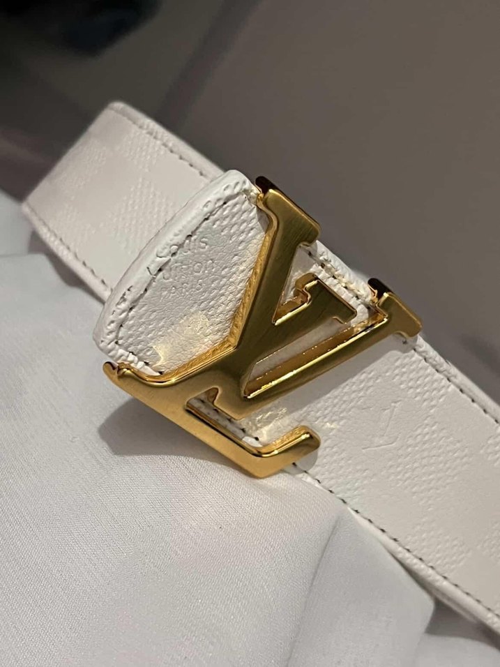 Louis Vuitton Beyaz Deri Kemer Gold LV Tokalı