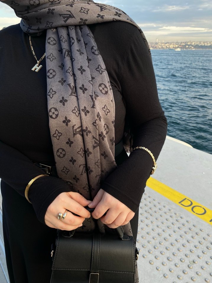 Louıs vuıtton desen gri-siyah kaşmir şal