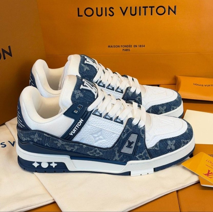 Louis Vuitton Erkek Beyaz Denim Spor Ayakkabı