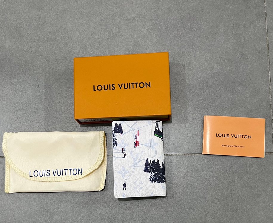 Beyaz renkte, Louis Vuitton markalı baskılı erkek kartlık, Paris sokak modasına uygun desenlere sahip.