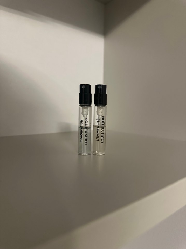 Kolay uygulama için sprey başlıklı Louis Vuitton kadın parfüm numuneleri, iki adet. Ürünler Louis Vuitton’un kendi testerlerıdır 1,5+1,5 ML şeklindedir