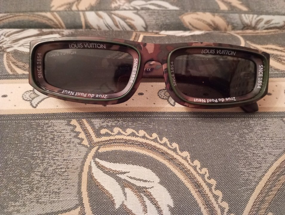 Louis Vuitton kadın gözlükleri, şeffaf kahverengi çerçeve ve gri tonuyla avangart Paris karşı kültür tarzını yansıtıyor. Çerçevede 'LOUIS VUITTON' ve 'SINCE 1854' yazıları bulunur.