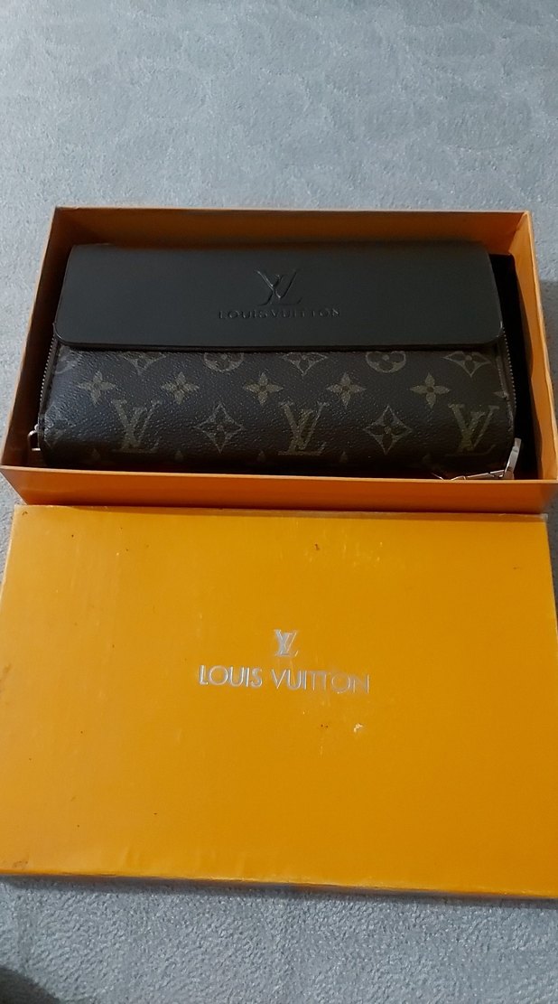 Louis Vuitton marka, kahverengi baskılı deri, tokalı kapaklı kadın cüzdan. Modern klasik tarzda, Paris şıklığını yansıtır. Günlük kullanıma uygundur.