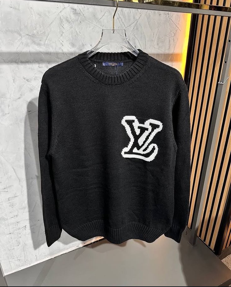 Louis Vuitton Nakışlı Siyah Premium Erkek Triko Kazak