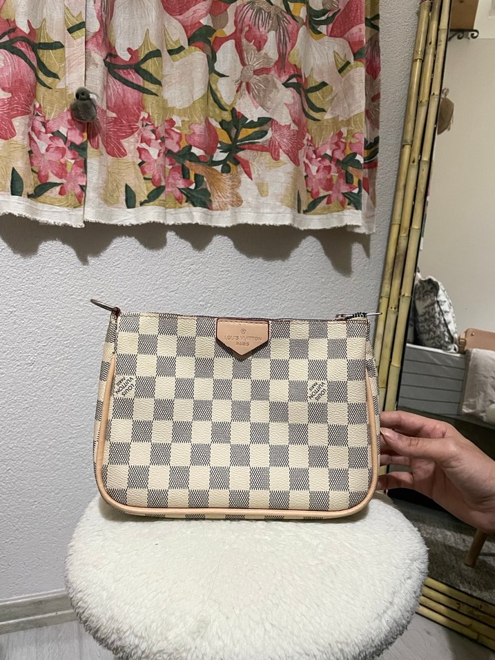 Louis Vuitton orijinal Beyaz Ekose Deri Kadın Çapraz Çanta