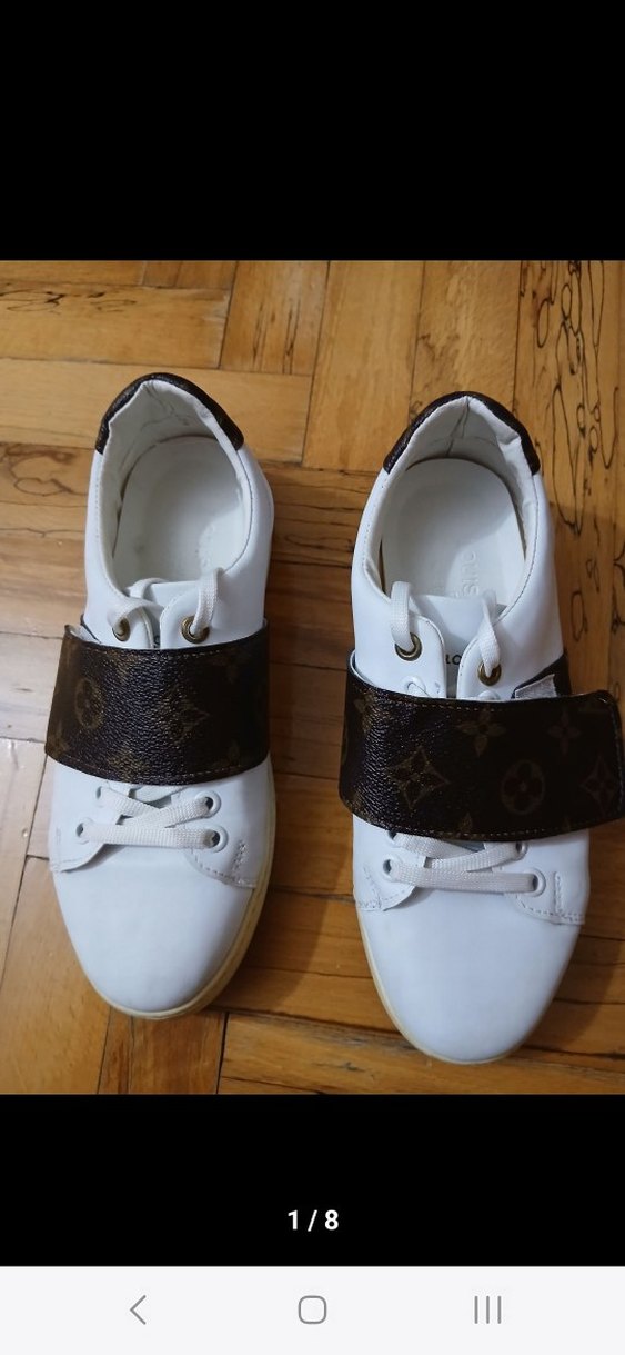 Beyaz kadın sneakers, parlak kauçuk dolgu topuklu ve desenli cırt cırtlı bantlı, trend sokak stili için uygundur. tabanda hafif renk değişimi olmuştur boyatilabilir