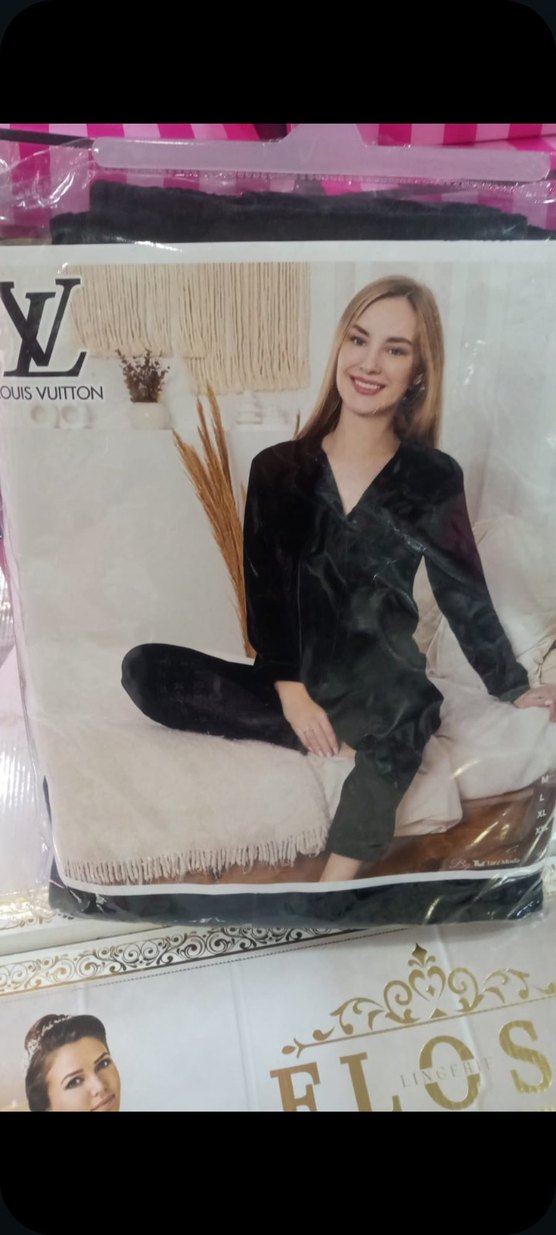 Louis Vuitton marka, uzun kollu ve uzun alt, siyah tonlarında bol kesim kışlık kadife kadın pijama takımı. Rahat ve uzun boy tasarımı ile konfor sunar. ️ Ürün sıfır etiketlidir ✨ M/38 ve XL/42 beden mevcuttur ✨