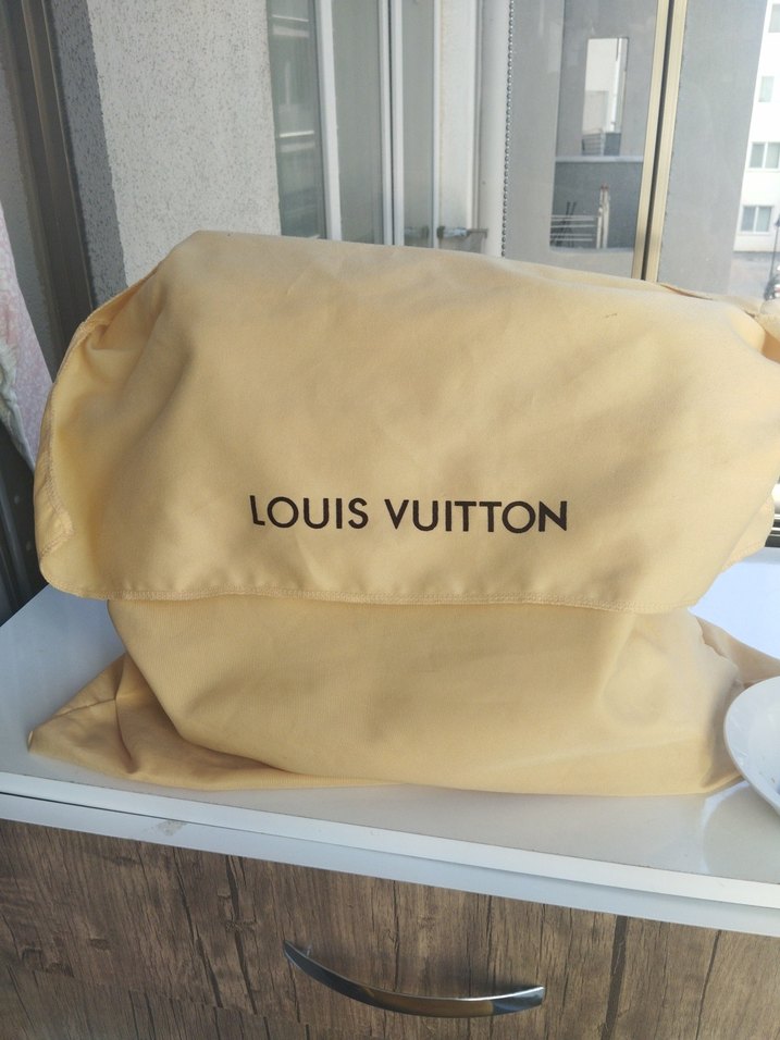 Louis Vuitton baskılı, açık sarı renkte geniş çanta. orjinal yeni