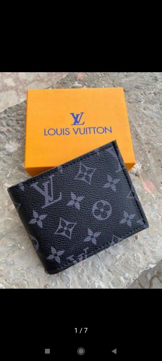 Louis Vuitton erkek cüzdanı, siyah ve gri desenli, Paris sokak modasını yansıtan şık ve dayanıklı bir üründür.