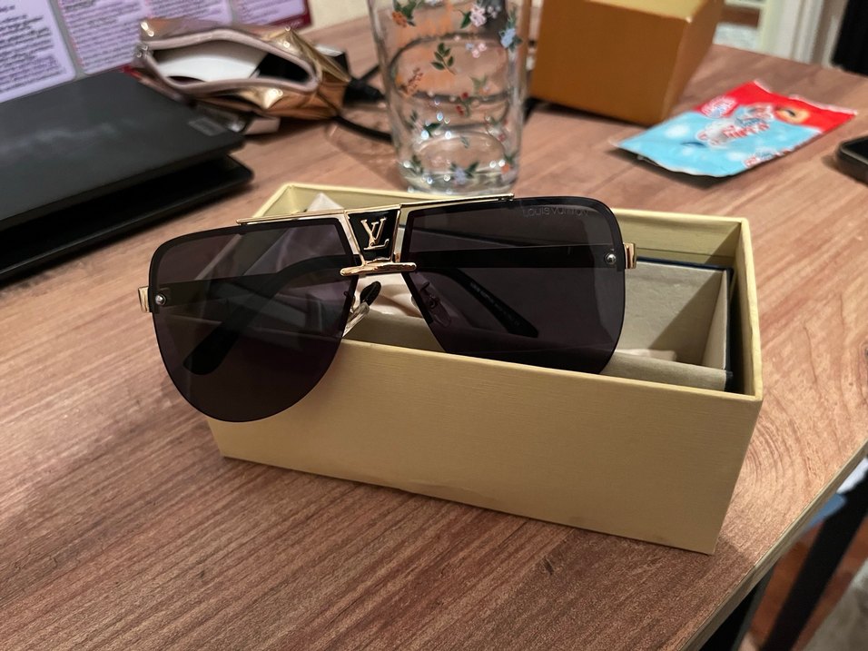 Louis Vuitton marka siyah parlak kadın güneş gözlüğü, şeffaf detaylı ve klasik streetwear tarzında. Orijinaldir ️