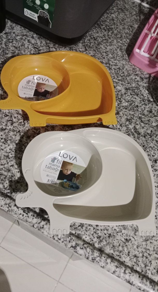 LOVA markalı çocuk tabak seti, çatal ve bıçaklı bölmeli tabak içerir. Açık sarı ve beyaz renk seçenekleriyle sunulur. ️