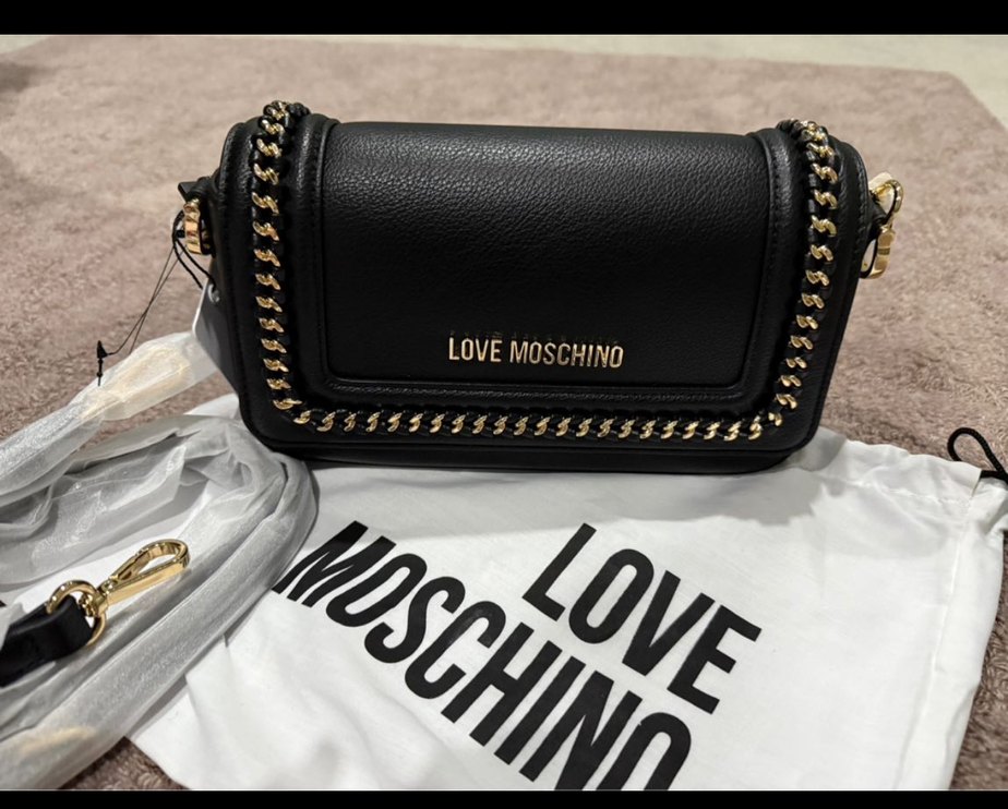 Love Moschino Zincir Detaylı Siyah Deri Çanta