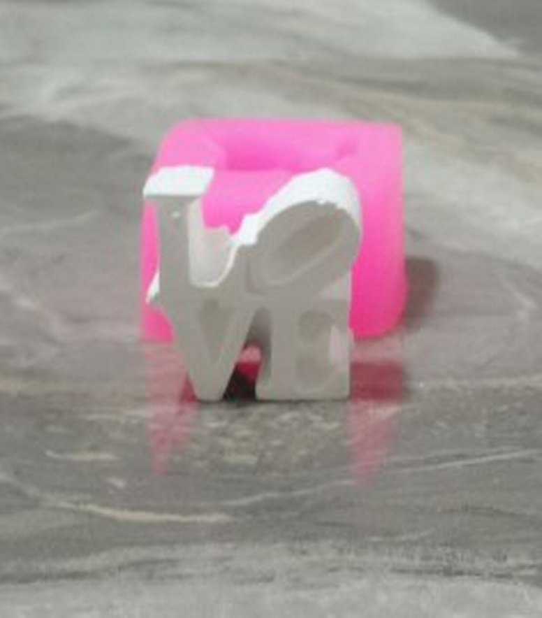 Pembe silikon kalıp, 'LOVE' yazılı kabartmalı sabunlar yapmak için uygundur.