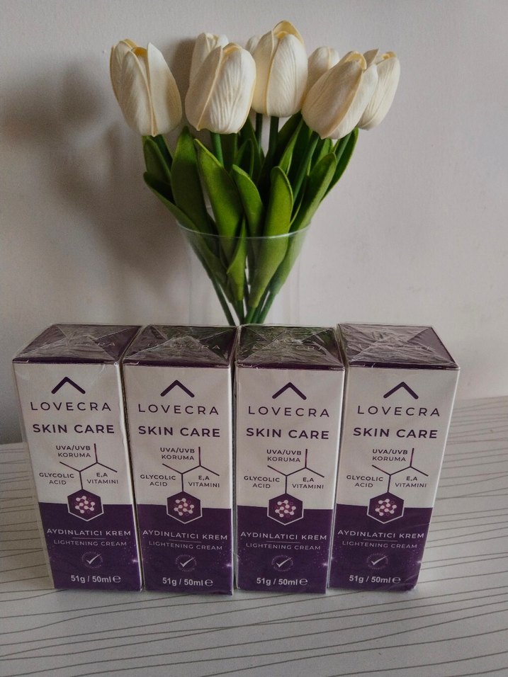 LoveCra Skin Care el kremi, glikolik asit ve vitaminler içerir. Cildi aydınlatır ve UV koruması sağlar. Her tüp 50 ml'dir.