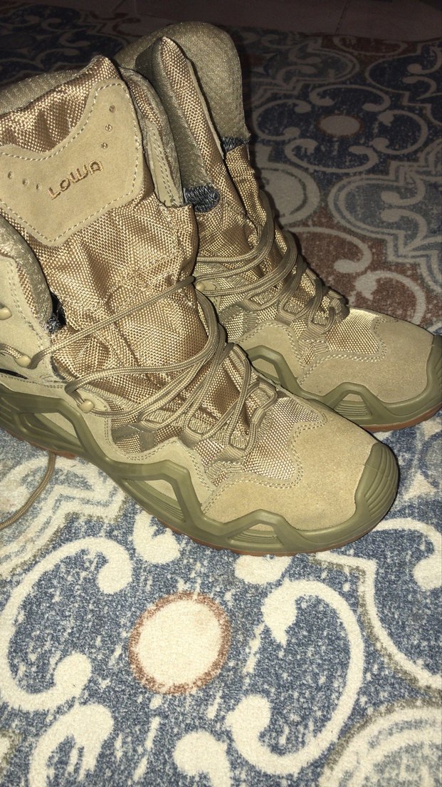 Bej renkli kamuflaj desenli, kauçuk malzemeden yapılmış ve bağcıklı erkek botları. Streetwear tarzı ve günlük kullanım için uygun, trend bir görünüm sağlar.