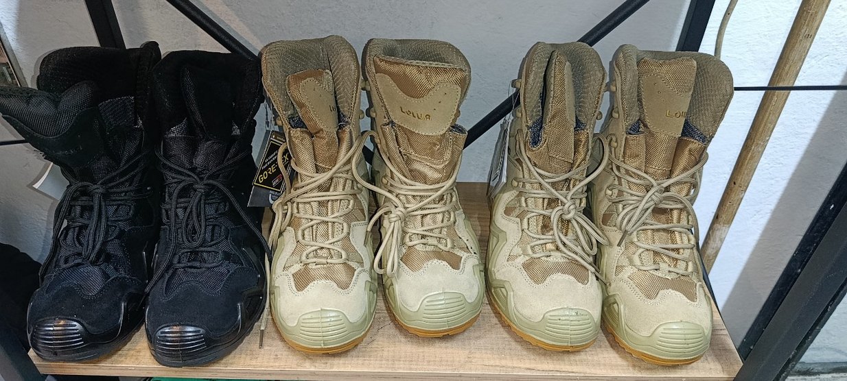 Lowa marka, kamuflaj desenli ve bağcıklı erkek botu. Hafif kahverengi ve dayanıklı kauçuk malzemeden üretilmiş, dış mekan kullanımı için uygun.