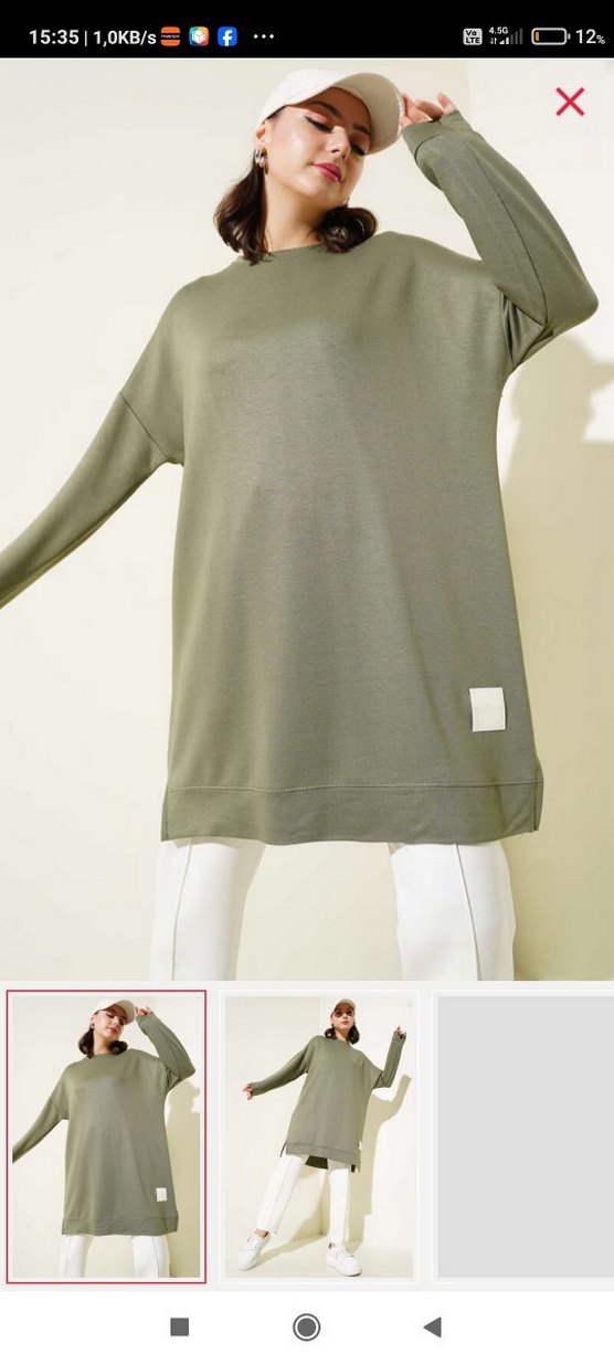 haki renkte, yuvarlak yakalı ve uzun kollu kadın tunik. Salaş kesimi ve midi boyu ile rahat bir stil sunar. Günlük kullanım için uygun, şık ve rahat bir parça.