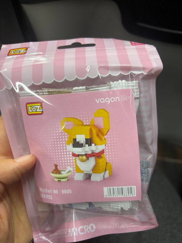 160 parçadan oluşan LOZ Mikro blok seti, pastel pembe ambalajda küçük bir köpek figürü oluşturmanızı sağlar. Model numarası 8605.