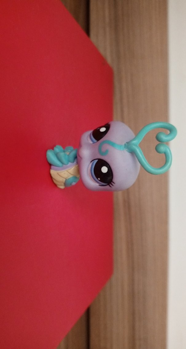 Büyük ifade dolu gözlere ve kalp şeklinde antene sahip, turkuaz pastel renkli sevimli aksiyon figürü.