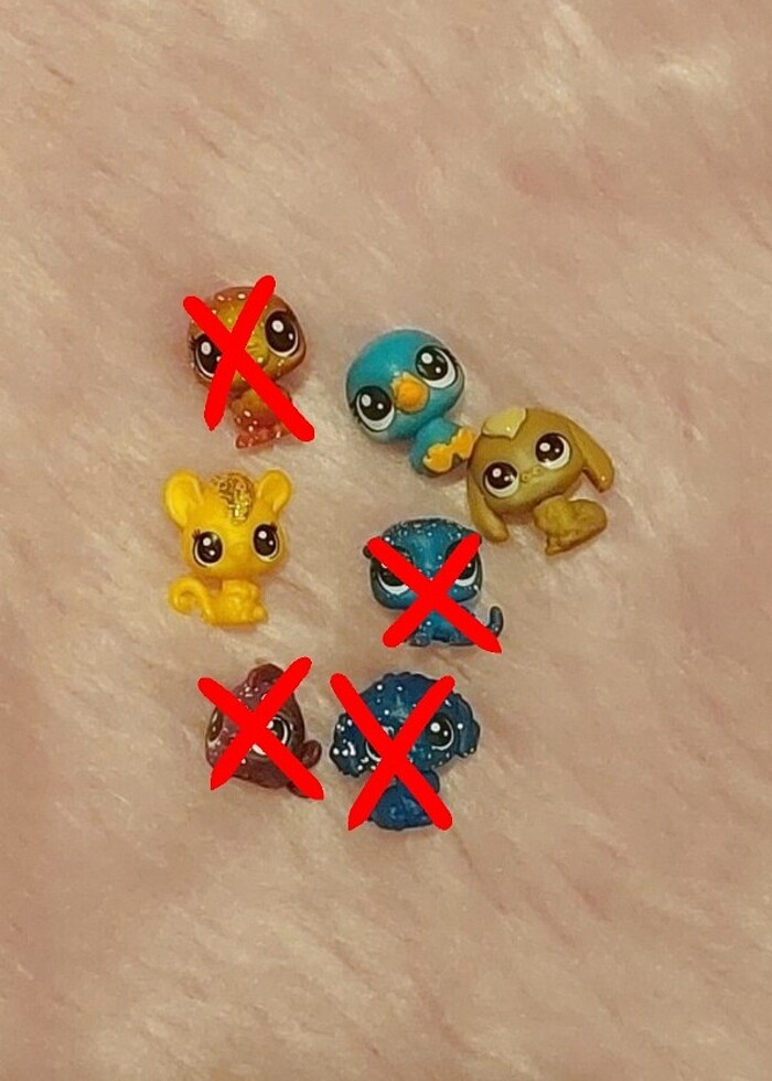 3 adet orijinal Littlest Pet Shop oyuncağı. İkinci görselde standart bir minişin yanında boyutları gösterilmiştir. Toplu fiyatıdır, tekli alım için mesaj atınız. Birinci görselde üzerine çarpı atılmış minişler satılmıştır.