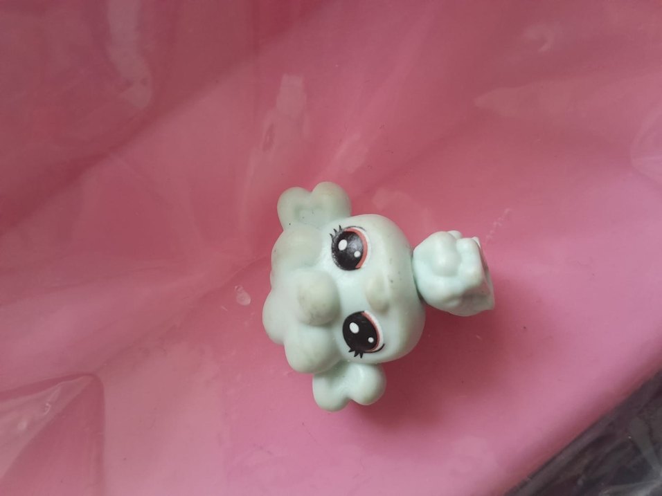 Büyük gözlere ve sevimli tasarıma sahip pastel pembe figür oyuncak.