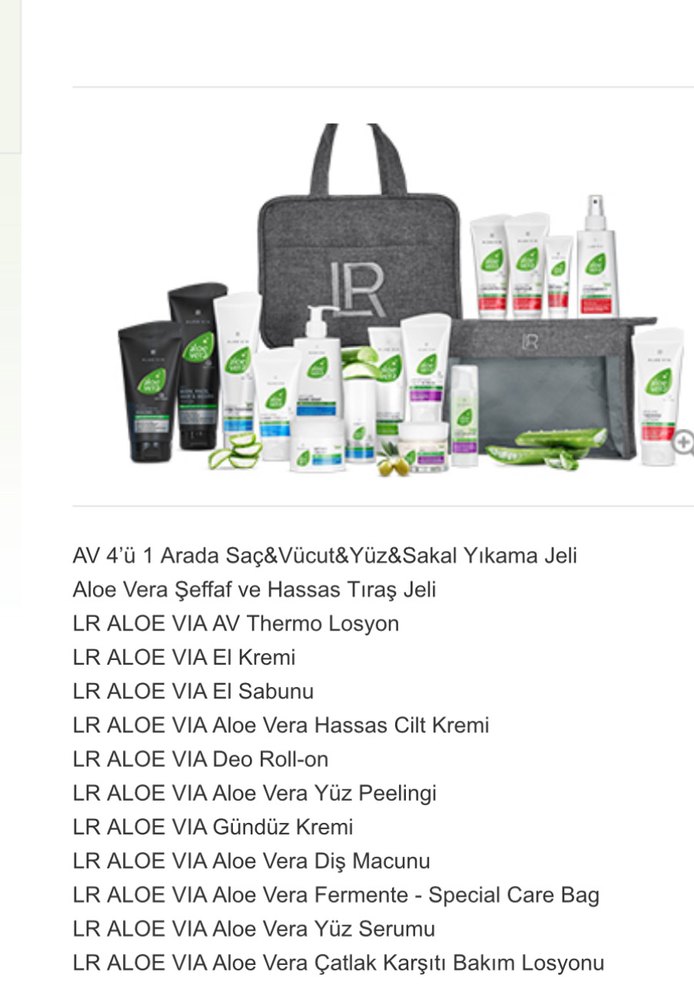 Saç, vücut, yüz ve sakal için 4'ü 1 arada yıkama jeli, hassas tıraş jeli, termal losyon, el kremi, sabun, hassas cilt kremi, roll-on, yüz peelingi, gündüz kremi, diş macunu, fermente aloe vera özel bakım çantası, yüz serumu ve çatlak karşıtı losyon içerir.