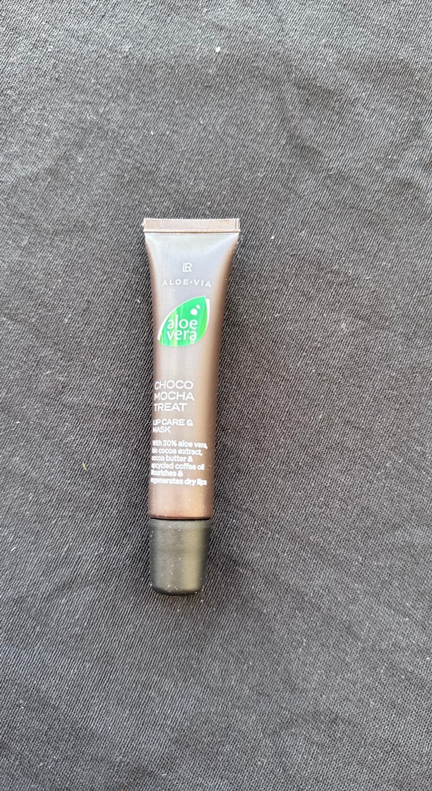 Aloe vera ve kakao özleri içeren bej parlak dudak balm, cildi nemlendirir ve bakım sağlar.