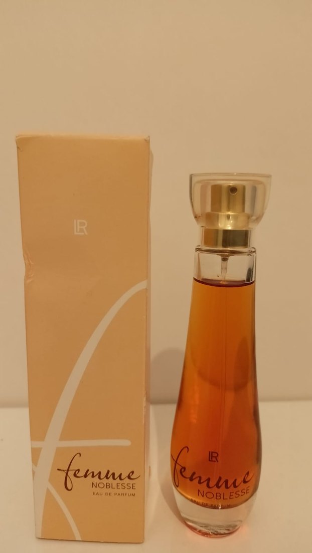 LR Femme Noblesse kadın parfümü, şık tasarımlı 50 ml şişede sunulur. Sıcak ve zarif bir kokuya sahiptir.