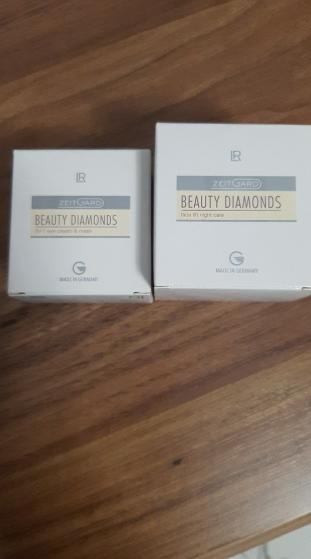 Alman yapımı LR ZEITGARD Beauty Diamonds yüz bakım seti, göz çevresi ve gece kremlerinden oluşur, cilt bakımı sağlar.