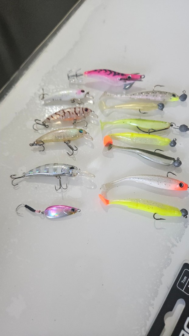 Çeşitli boyut ve şekillerde renkli balıkçılık yemleri seti, farklı balıkları çekmek için uygundur.