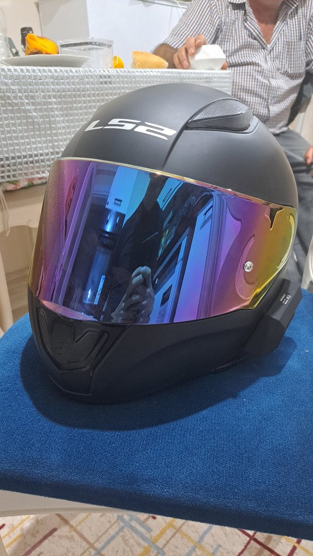 Parlak siyah LS2 motosiklet kaskı, çok renkli baskılı vizöre sahip, rock punk tarzına uygun street style tasarım. Dayanıklı plastik malzeme.Az kullanılmış Ls2 Rapid 2 M beden kask intercom takılı şekilde verilecektir