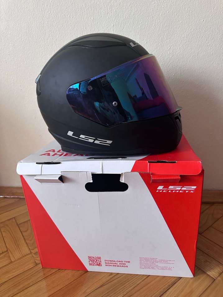 LS2 motosiklet kaskı, baskılı desen ve renkli vizöre sahip. Plastik malzemeden yapılmış, rock punk ve sokak stilini yansıtır. ️