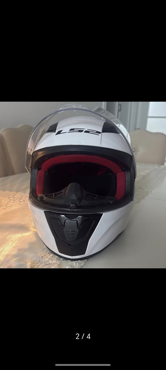 Şeffaf cam vizörlü beyaz minimalist biker motosiklet kaskı, sade ve temel tasarıma sahiptir. ️ufak tefek çizikleri var az kullanılmış iç petleri çok iyi durumda