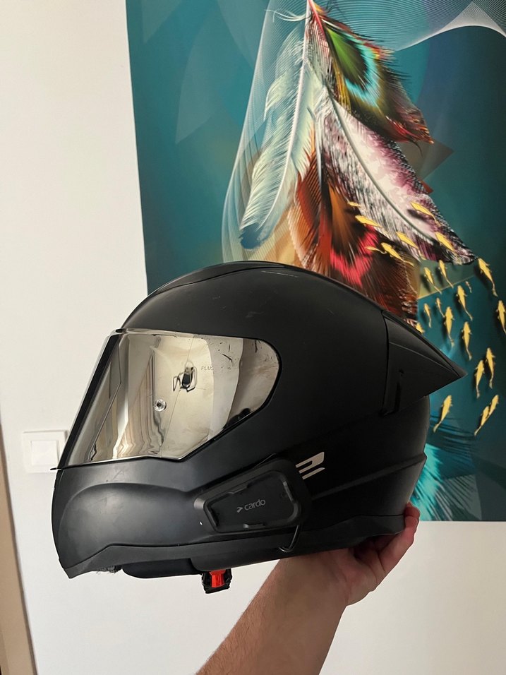 Kaskla birlikte şeffaf vizörü aynalı gümüş vizörü ve kırmızı vizör hediye. Kask sadece bir ay kullanıldı. S beden. Kaskın tek başına fiyatı 3.500 interkomla birlikte almak isterseniz 8.500 (Cardo siprit ) su geçirmez. İki farklı interkoma bağlayabiliyorsunuz