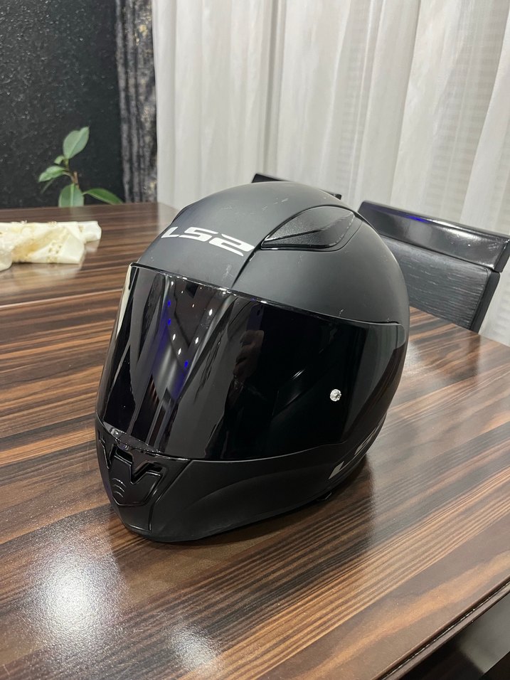 Mat siyah motosiklet kaskı, tokalı kayış ve baskılı LS2 logosu ile. Dayanıklı plastikten yapılmıştır. Karanlık renkli vizörü minimalist biker tarzını tamamlar. ️