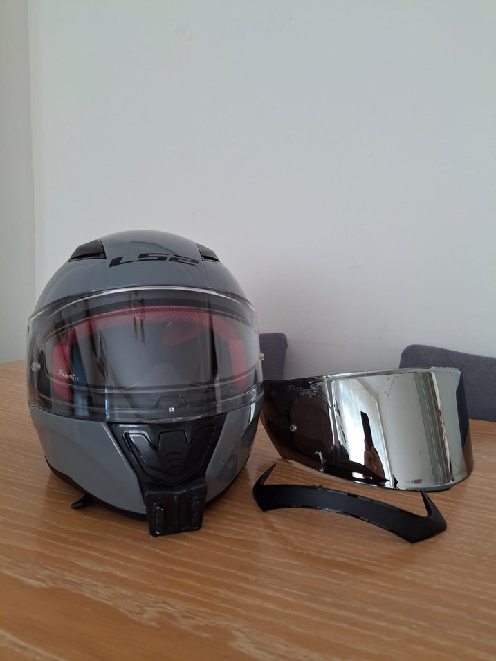 Kask orjinalinde rapid modelidir.Fakat arka eklentiyle rapid 2 görünümü verilmiştir. çift vizor verilecektir.ayna vizorde kullanımdan dolayı çizikler mevcuttur.şeffaf vizorde herhangi bir sorun yoktur.üzerinde orjinal pinlok vardır.Kaskın içi temiz herhangi bir sorunu yoktur.Bir kere sağ tarafa düşmüştür.dusmeden dolayı fotoğraftaki beyazlık olmuştur. çene kısmında go pro kamera apartı takılıdır. kask XXL bedendir. pazarlık sünnettir.