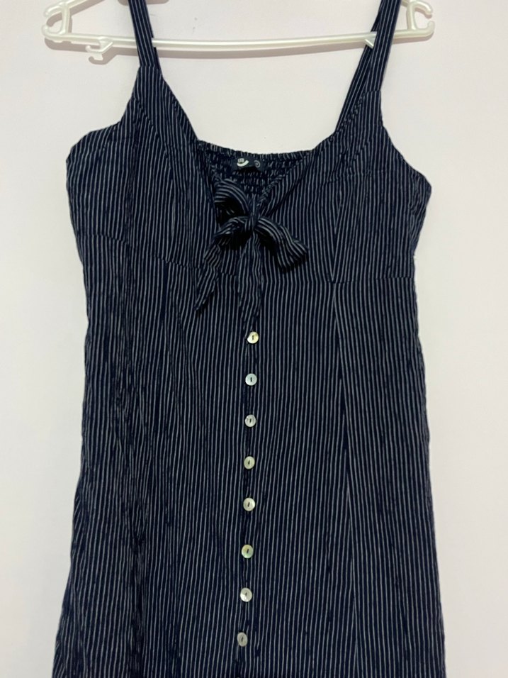 Lacivert beyaz çizgili midi elbise, hiç giymedim kısa programda yıkadım , full düğmeli, m beden