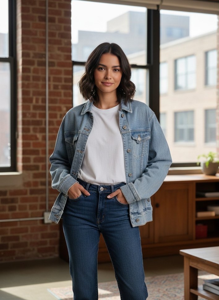 Düğmeli, bol kesim mavi denim ceket, uzun kollu ve normal boyda. Rahat sokak stili için uygundur. Birkaç kez kullanıldı.